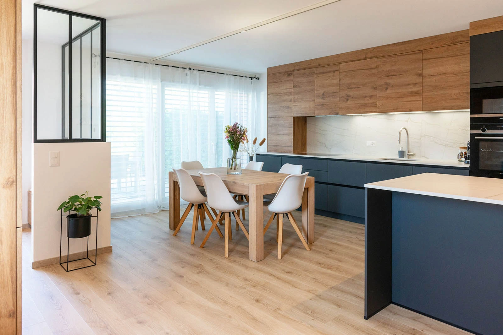 Notre équipe vous accompagne dans tous vos projets, de la rénovation de cuisine complète à l’aménagement d’une cuisine ouverte ou compacte. Grâce à nos solutions personnalisées, nous transformons chaque espace en un lieu de vie chaleureux, pratique et élégant.