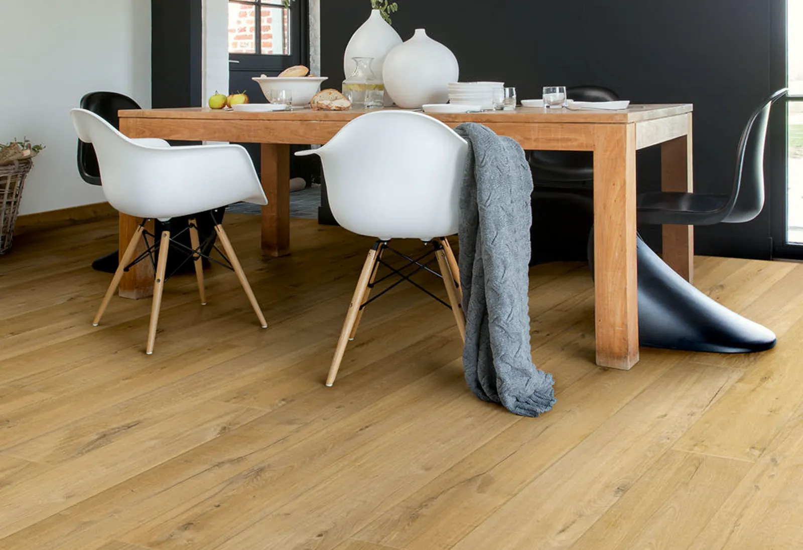 Les sols stratifiés Quick-Step sont disponibles dans une multitude de coloris et de styles, du chêne classique aux finitions contemporaines, vous permettant de créer l’ambiance parfaite pour chaque pièce de votre intérieur.